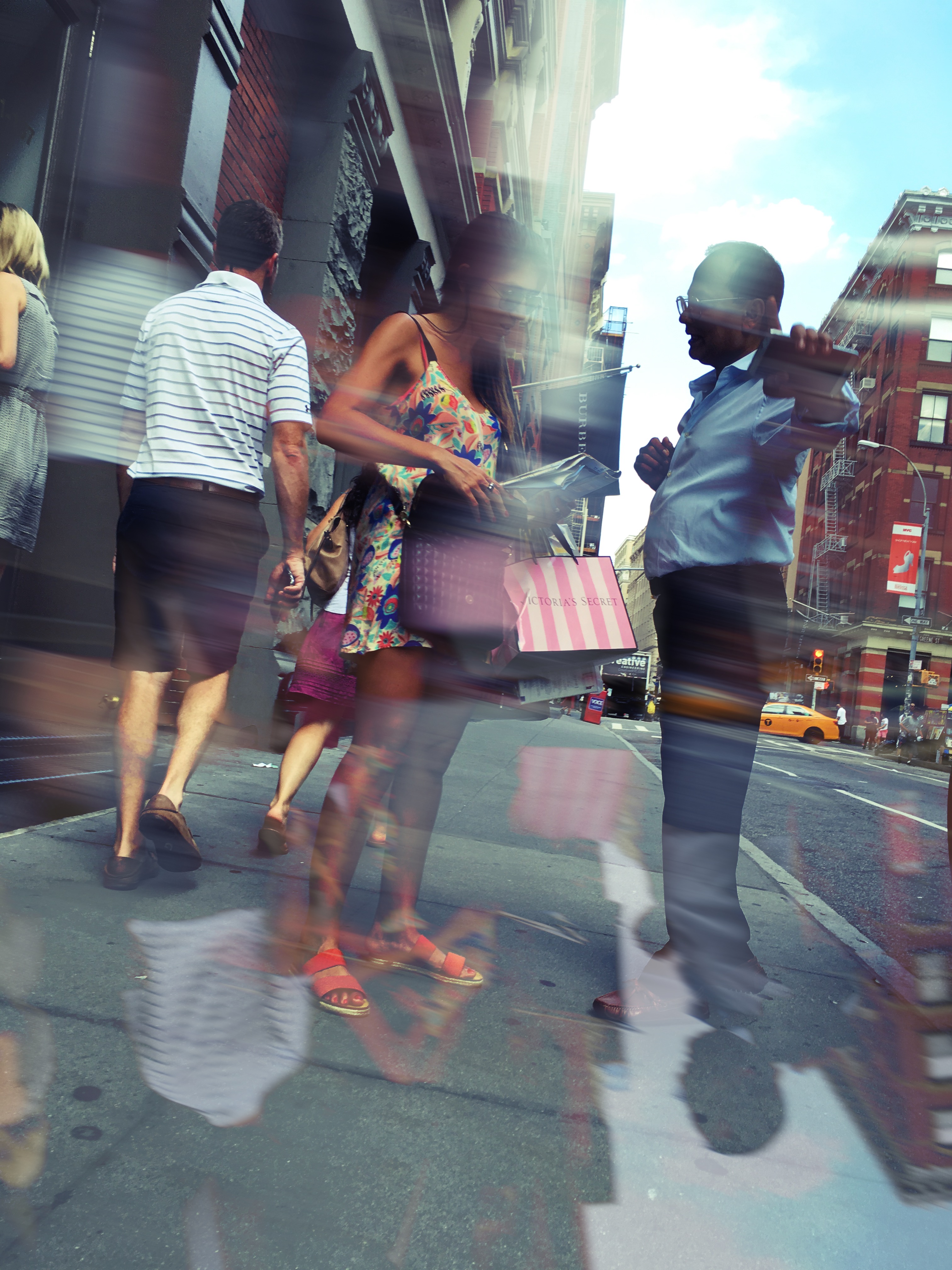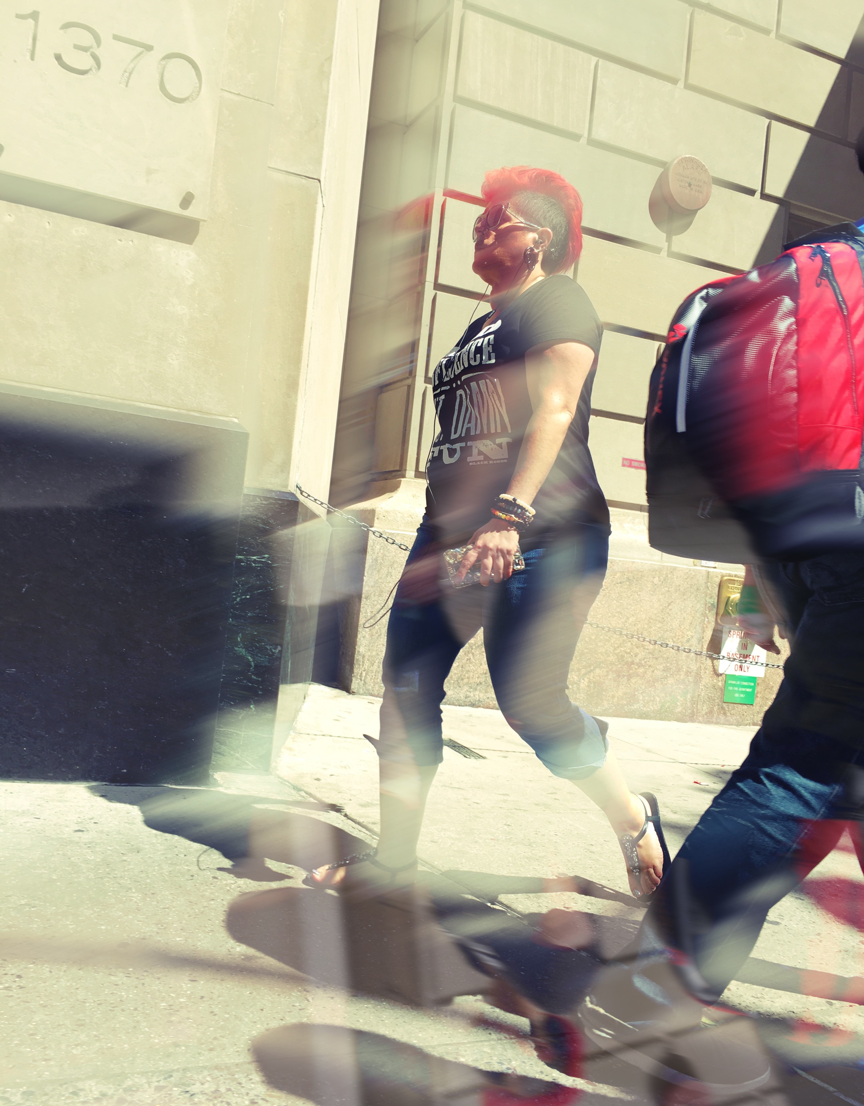 Check out The Fashion Matrix for street-style and public fashion images we’re posting. Here is a gallery of our street photos from July in NYC. All shots were taken using the Hipstamatic camera app on iPhone, with the so-called “Fashion Combo” comprised of a “lens” (Tachman) and “film” (Runway) in the app. The combo has a blurry effect, which evokes the constant motion of New York City.